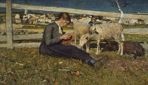 Girl making socks by Giovanni SegantiniSegantini, Giovanni -