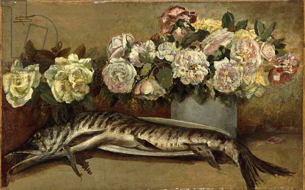 Still life with flowers and fish or Pike ...Segantini, Giovanni -